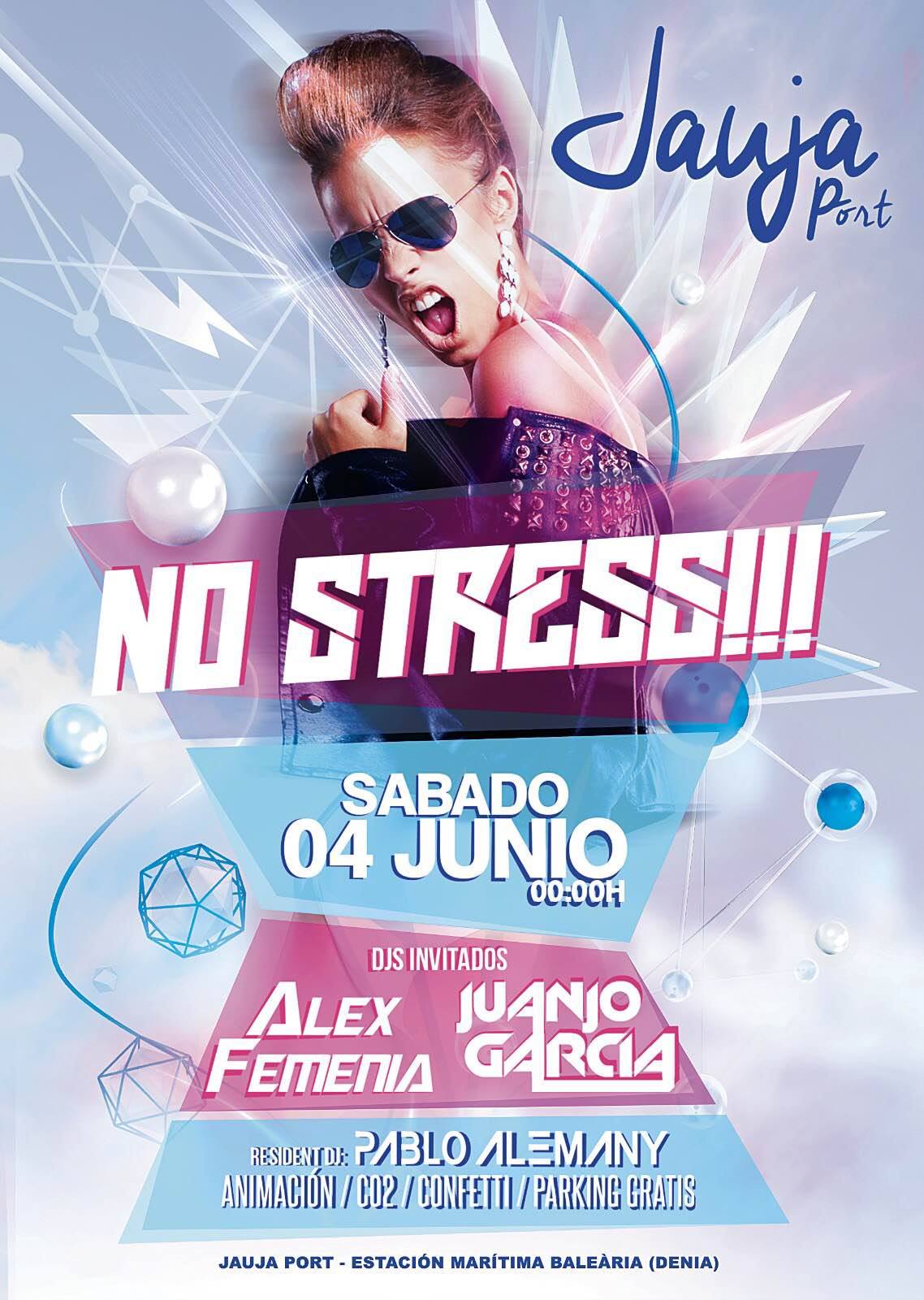 Este sábado no te pierdas la fiesta «No Stress» con las actuaciones de Juanjo G. Ortega, Alex Femenia y Pablo Alemany. Y si quieres un respiro, nuestra animación tiene el ingrediente perfecto… ya sabes, sin estrés. Además, a partir de las 00h, se abre la zona Chill y podrás disfrutar del sabor de un buen mojito.
